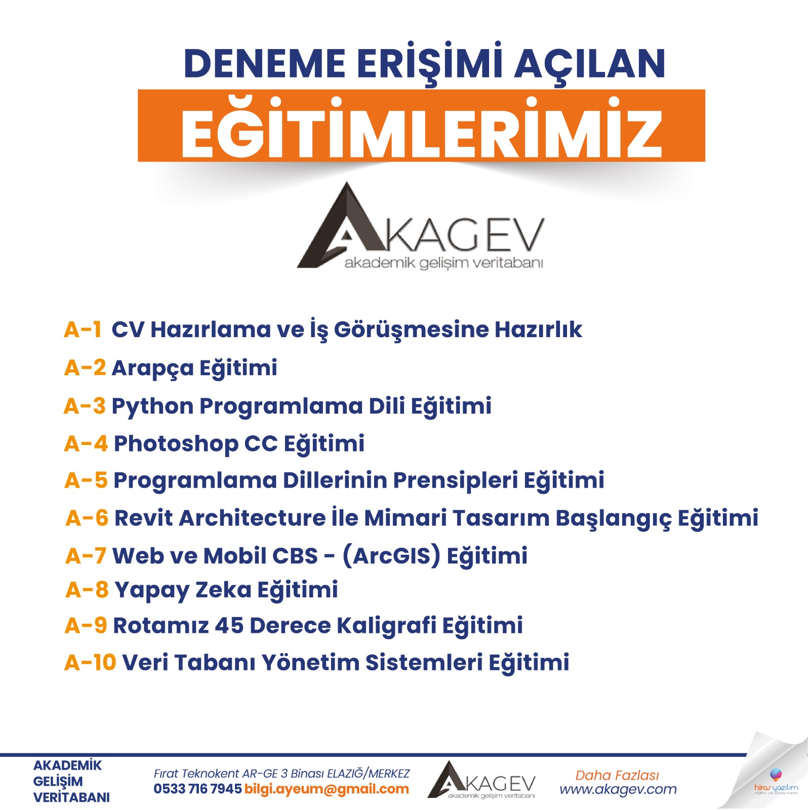Akademik Gelişim Veritabanı (AKAGEV), 7 Kasım 2025 tarihine kadar 10 adet ders ile deneme erişiminize açılmıştır.