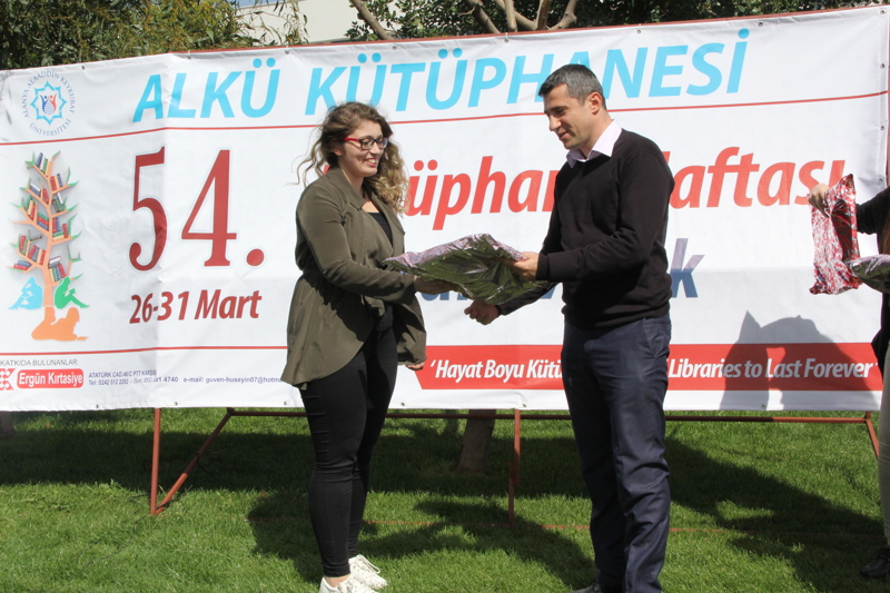 54. Kütüphane Haftası kapsamında 2017-2018 Eğitim öğretim yılı en çok kitap okuyan ilk üç öğrenciye ödül verildi. Birinci olan ALTSO Meslek Yüksekokulu Öğretim Görevlisi Cemal Altınkeser, ödülünü Rektör Pınarbaşı’ndan aldı. Ödül töreni kapsamında ikinci olan Mühendislik Fakültesi Endüstri Mühendisliği Öğrencisi Ozan Şimşek’e ödülünü Rektör Yardımcısı Prof. Dr. Hasan Güneş verirken, en çok kitap okuyan Mühendislik Fakültesi İşletme Mühendisliği Öğrencisi Aybike Çinbar’a üçüncülük ödülünü Genel Sekreter Prof. Dr. Mehmet Gümüş takdim etti. Program, üniversite bahçesinde kitap okuma etkinliği ve ikramlar ile devam etti.