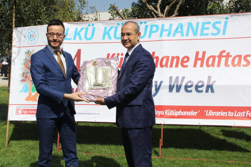 Kütüphane ve Dokümantasyon Daire Başkanlığı olarak bu yıl 54. Kütüphane haftası teması ‘Kültürel Değişim ve Kütüphaneler’ olarak belirtilmiştir. Kütüphaneler haftası nedeniyle İşletme Fakültesi bahçesinde organize edilen etkinliğimize Rektörümüz Prof. Dr. Ahmet Pınarbaşı, Rektör Yardımcıları Prof. Dr. Hasan Güneş ve Prof. Dr. Leyla Harputlu, Genel Sekreterimiz Prof. Dr. Mehmet Gümüş, Fakülte Dekanları, Daire Başkanları, Meslek Yüksekokul Müdürleri, Şube Müdürleri Akademik ve İdari personelin yanı sıra çok sayıda öğrenci katılmıştır. 54. Kütüphane Haftası kapsamında bu yıl Kütüphanemizden en çok kitap okuyan ilk üç öğrenciye hediyeler dağıtıldı. İlçemiz Fatma Özmüfütoğlu Ortaokulu öğrencileri de şiirleri ile programa renk katmışlardır.