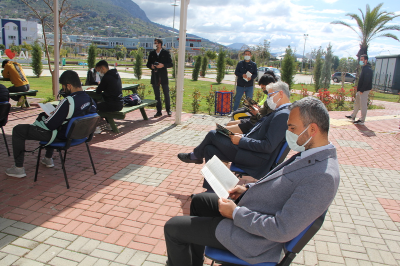 Alanya Alaaddin Keykubat Üniversitesi öğrencileri, 57. Kütüphane Haftası kapsamında Kütüphane ve Dokümantasyon Daire Başkanlığı tarafından organize edilen kitap okuma etkinliğine katılarak kitap okuma alışkanlığına dikkat çekti. 30 dakika süren ve sosyal mesafe kurallarına dikkat edilerek açık havada düzenlenen etkinliğe ALKÜ Rektör Yardımcısı Prof. Dr. Erdoğan Aslan, daire başkanları, akademik ve idari personel ile öğrenciler katıldı.