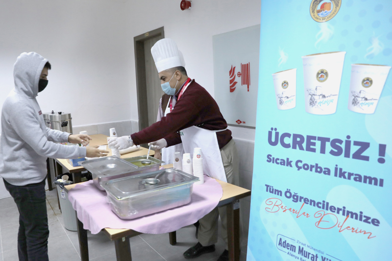 Çay ve çorba ikramının yapılması için Sağlık, Kültür ve Spor Daire Başkanlığı ile Kütüphane ve Dokümantasyon Daire Başkanlığının, Alanya Belediyesi ile iş birliği içinde çalıştıklarını belirten Rektör Kalan, verilen destek için Alanya Belediyesine teşekkür etti.