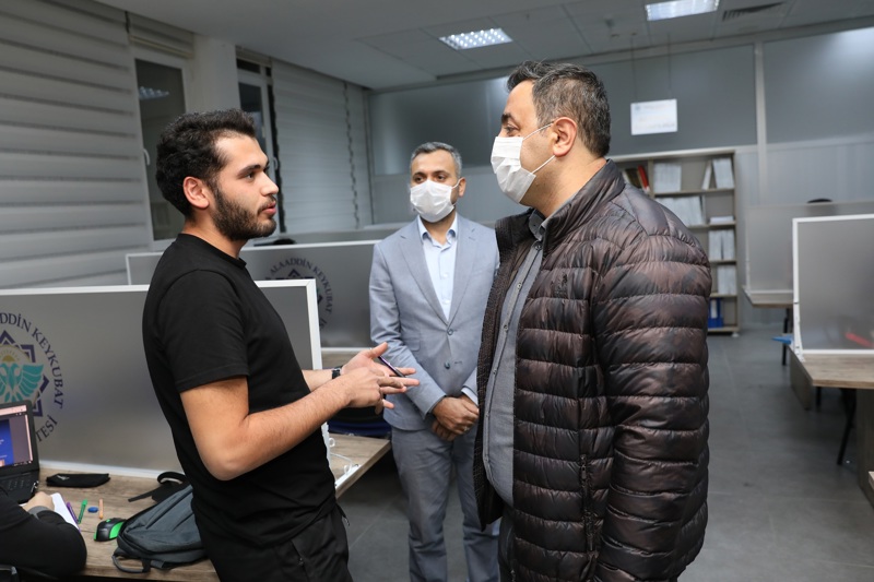 Alanya Alaaddin Keykubat Üniversitesi (ALKÜ) Rektörü Prof. Dr. Ekrem Kalan, Vize (ara sınav) haftasında kütüphanede sınavlara hazırlanan öğrencilere ziyarette bulundu.