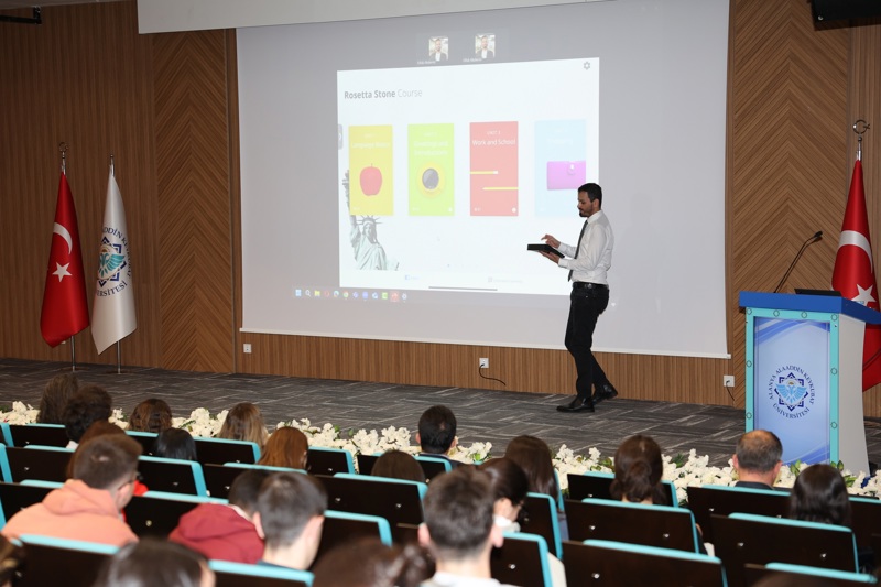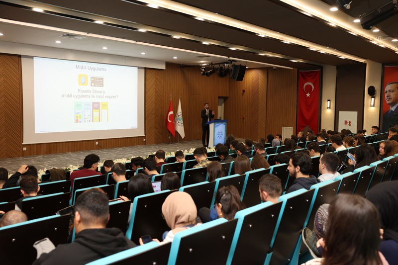 Kütüphane ve Dokümantasyon Daire Başkanlığının abone olduğu dünyanın en çok tercih edilen online dil eğitim aracı olan Rosetta Stone veri tabanının kullanıcı eğitimi gerçekleştirildi. EBSCO eğitim sorumlusu Ufuk AKDEMİR tarafından gerçekleştirilen eğitimde, Rosetta Stone'nun içeriği ve mobil kullanımı hakkında kullanıcılara bilgi verildi. Eğitime, Kütüphane ve Dokümantasyon Daire Başkanlığı personelleri, Yabancı Diller Yüksekokulu öğrencileri, akademisyenler ve idari personel katıldı.
